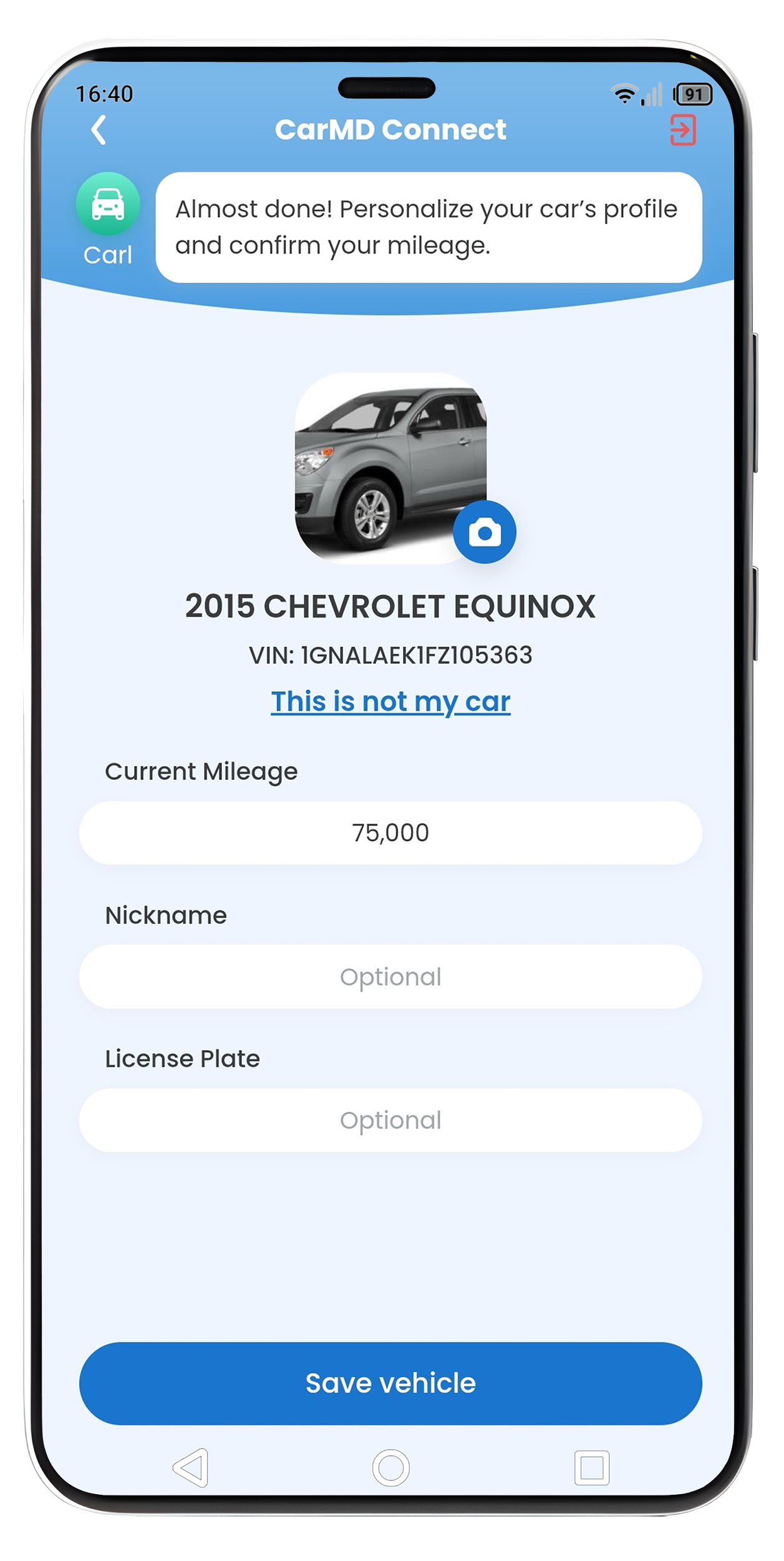 - You have the option to input a nickname for your vehicle and the license plate number.