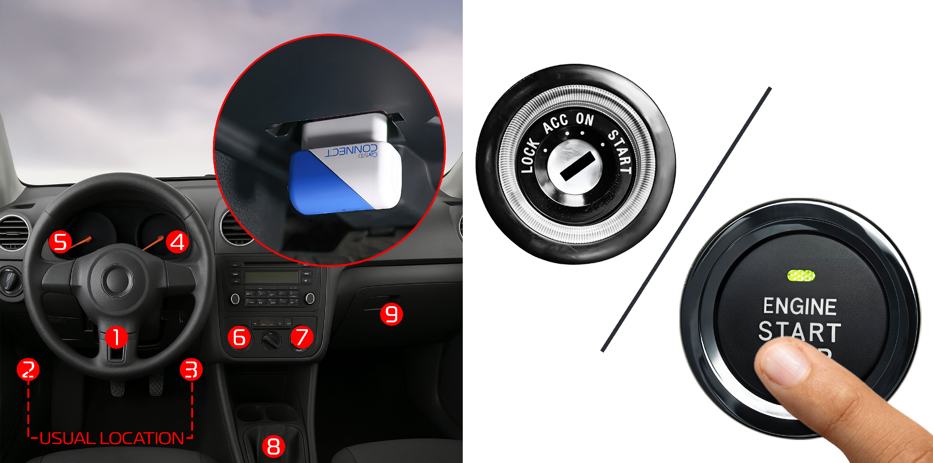 - With the engine off, locate your vehicle’s OBD2 port and plug in your device. The port is usually located under the steering wheel. Use the app to find where yours is.