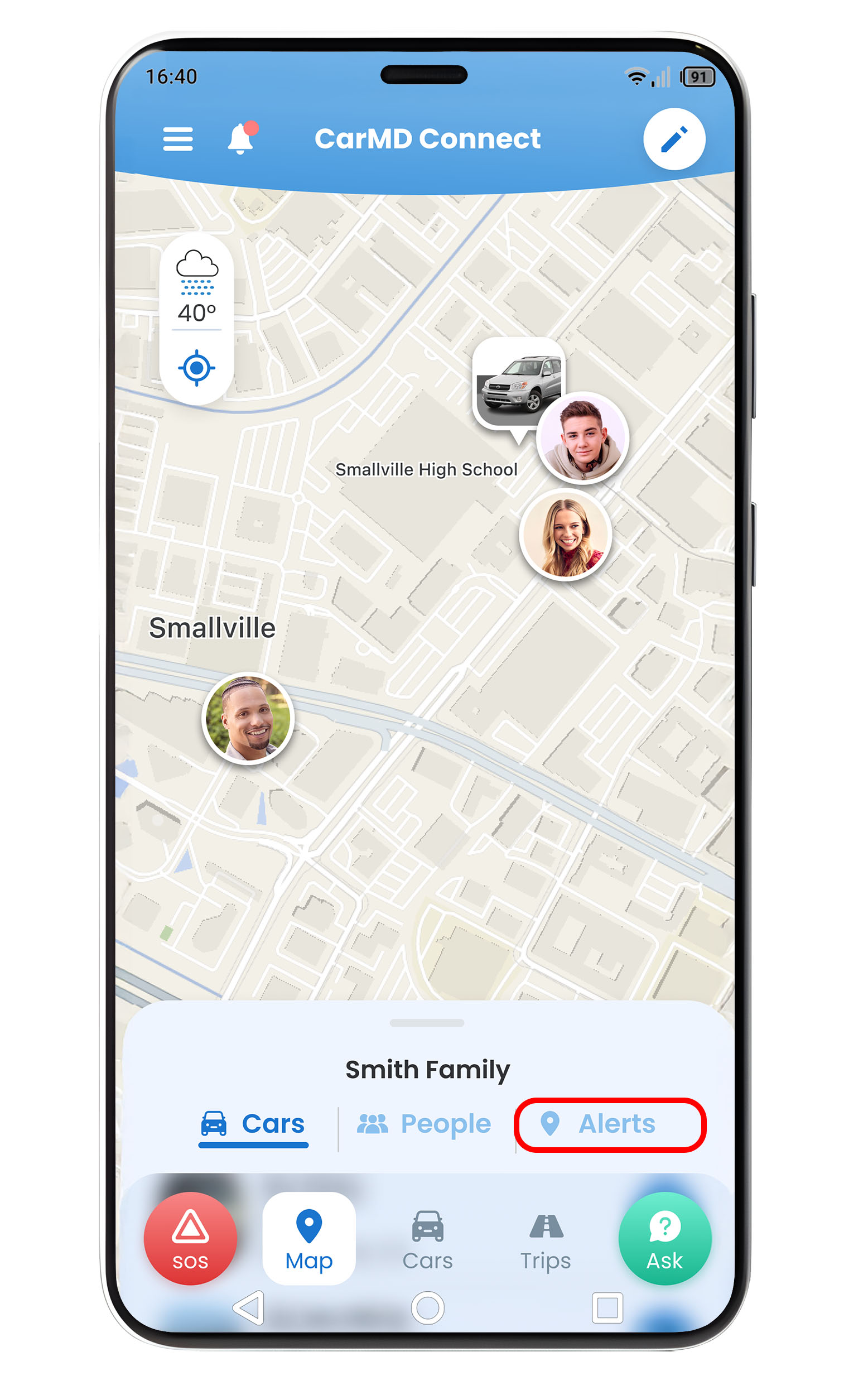 Step 2 - Tap the ‘Alerts’ tab on the group bar.