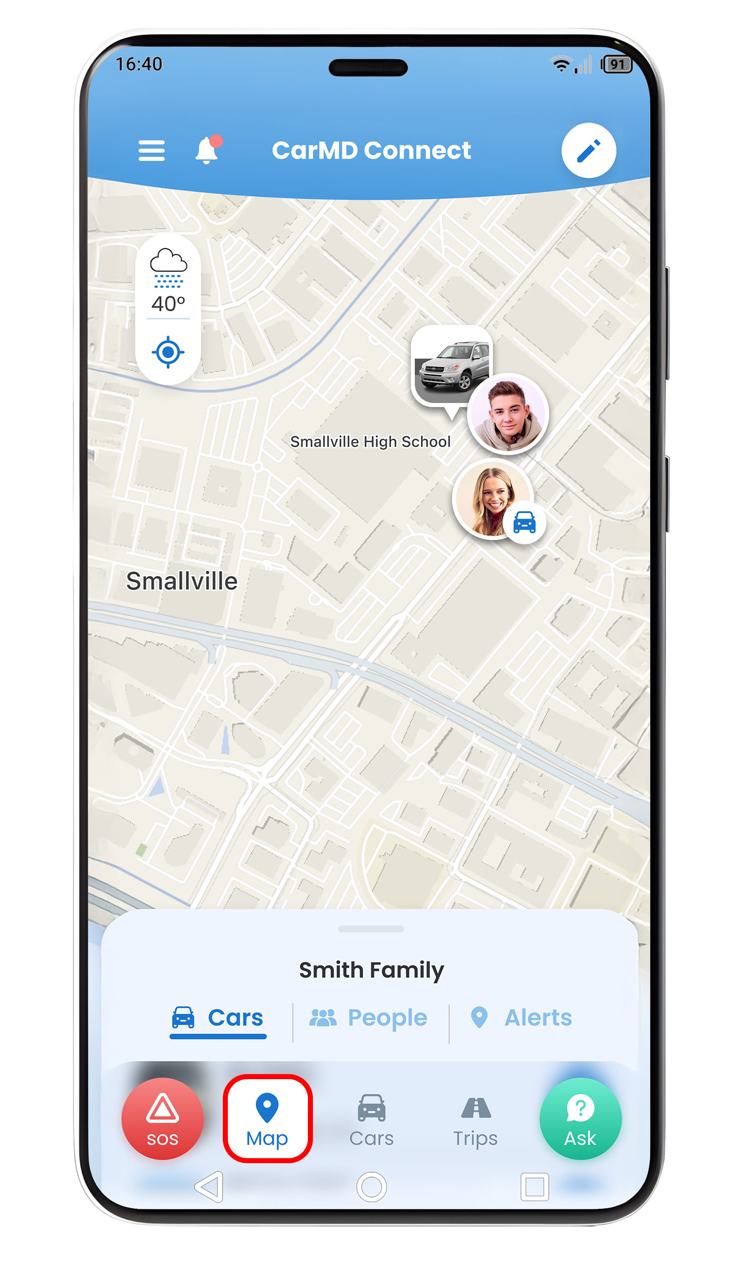 Step 1 - Tap the 'Map' button on the footer navigation bar.