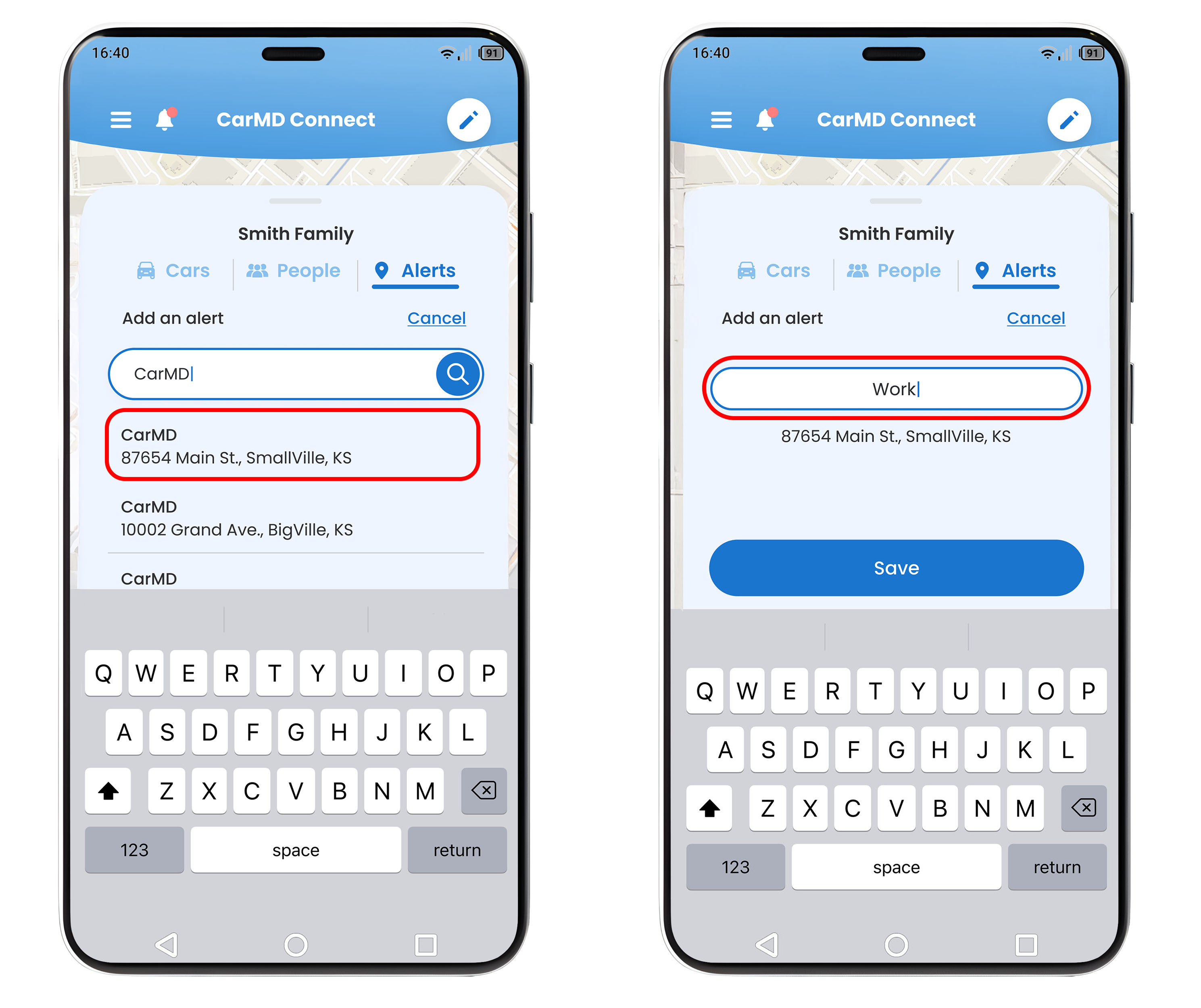 Step 4 - Search by name or address (work, school, home, other) for the desired location and select it.