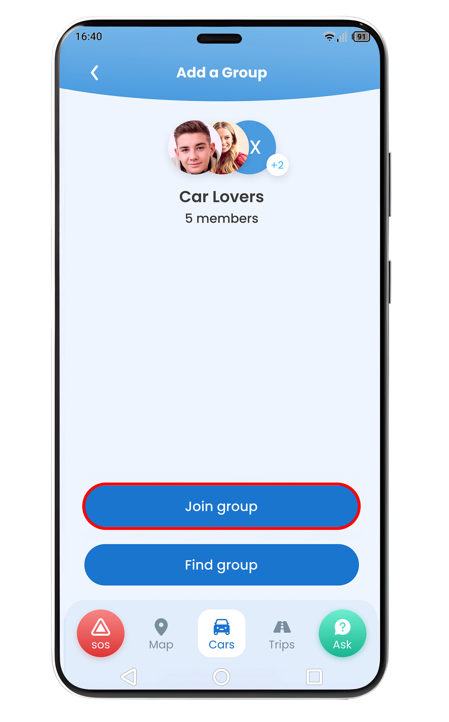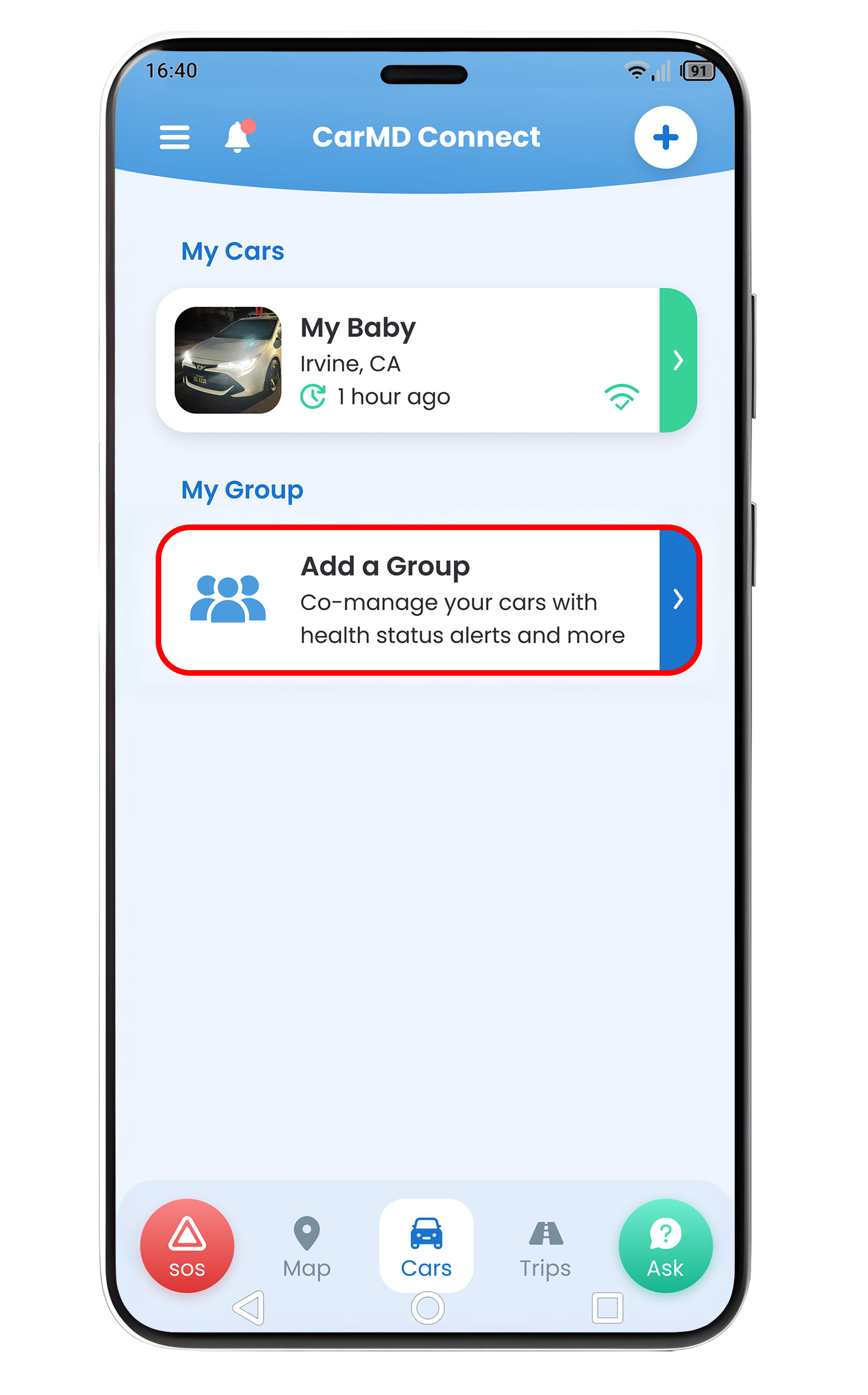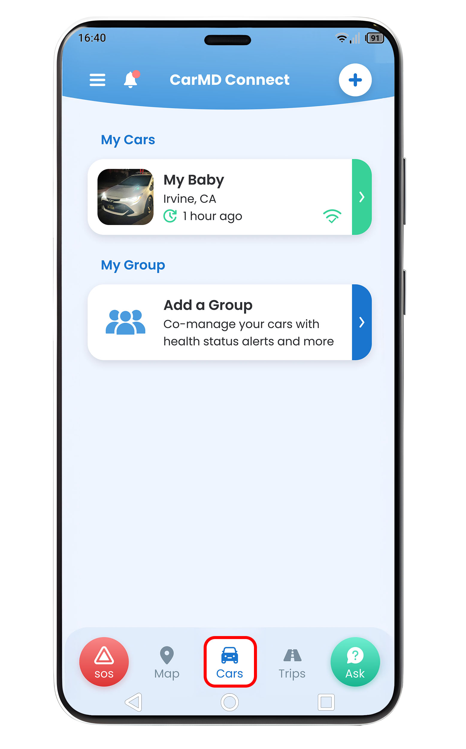 Step 1 - Tap the 'Cars' button on the footer navigation bar.