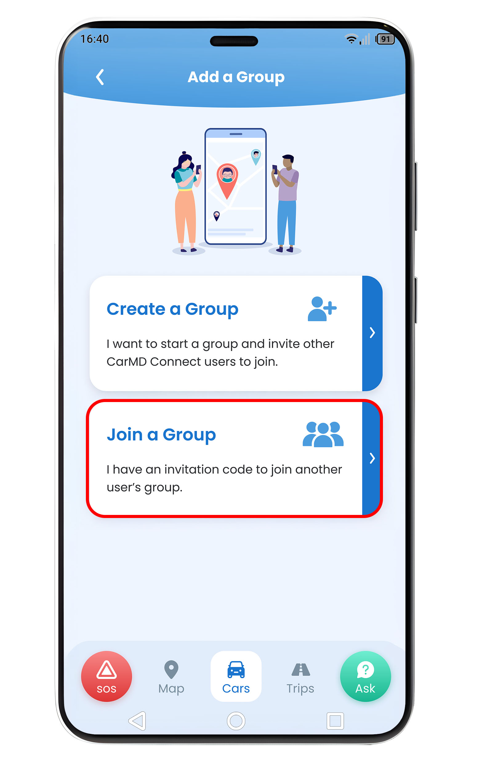 To guide you on how to join an existing group in CarMD Connect for shared vehicle monitoring.