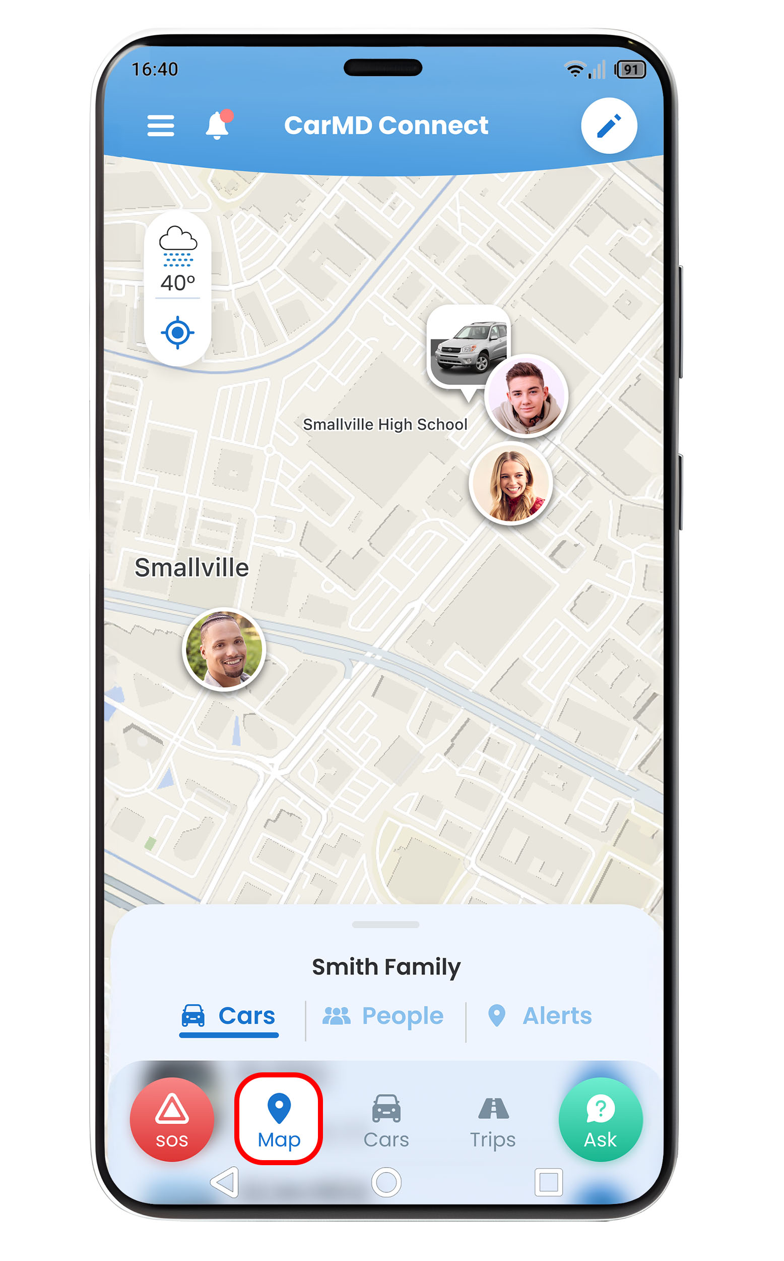 Step 1 - Tap the 'Map' button on the footer navigation bar.